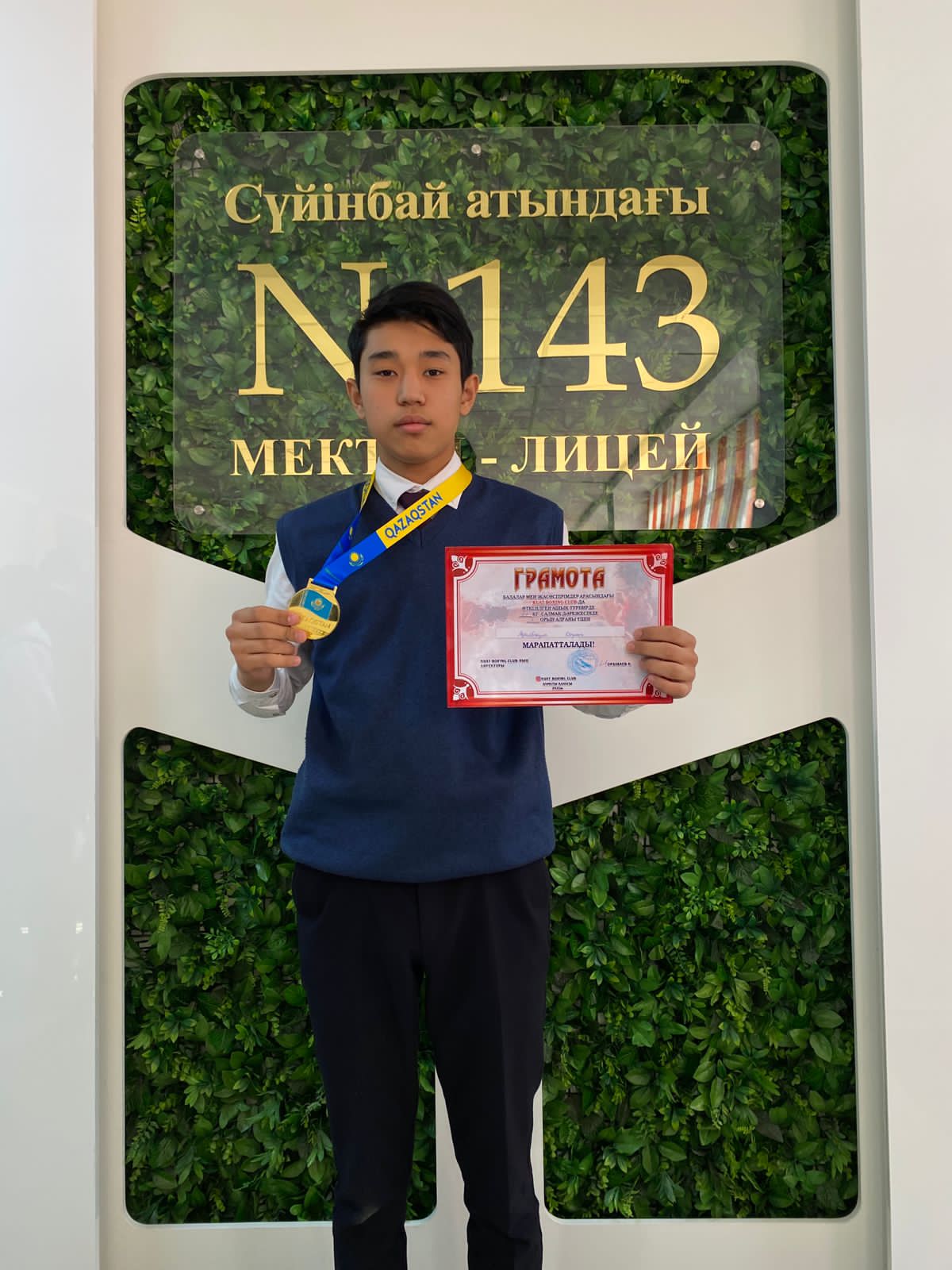 12 декабрь 2022 0 1 2 3 4 5 9 "б" сынып оқушысы Асылбек Дәулет Сүйінбай атындағы №143 мектеп-лицейінің 9 "б" сынып оқушысы Асылбек Дәулет балалар мен жасөспірімдер арасында өткізілген ашық турнирде бокстан 60кг салмақ дәрежесінде I - орын алғаны үшін марапатталды. Осы беттің QR-коды:QR-код этой страницы: