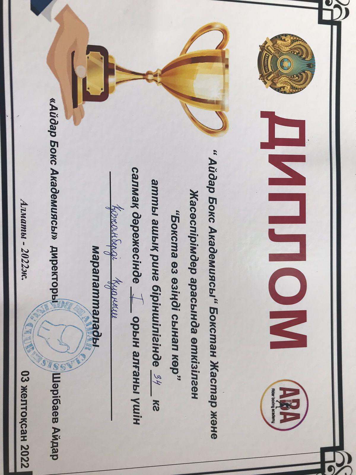 Сүйінбай атындағы №143 мектеп-лицейдің 3 «А» сынып оқушысы Қожанберді Қуаныш бокстан жастар және жасөспірімдер арасында өткізілген «Бокста өз-өзіңді сынап көр» атты ашық ринг біріншілігінде І орынды жеңіп алды.