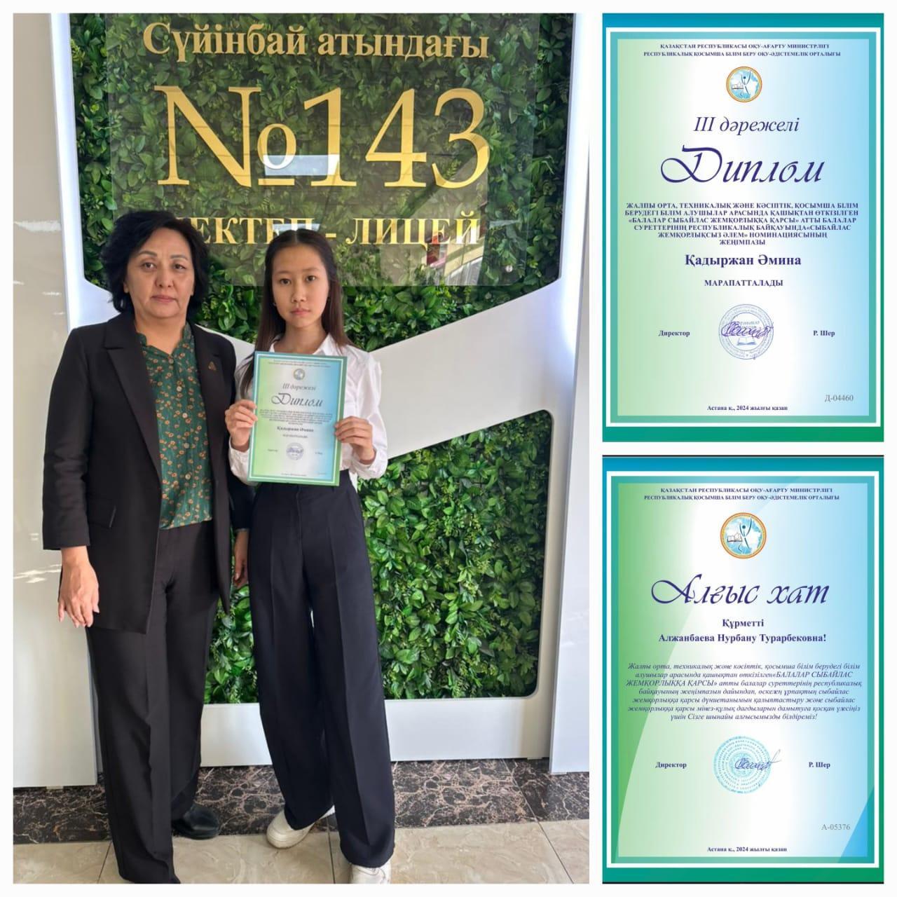 9"Г" сынып оқушысы Қадыржан Амина Есенғалиқызы ІІІ дәрежелі дипломмен марапатталды
