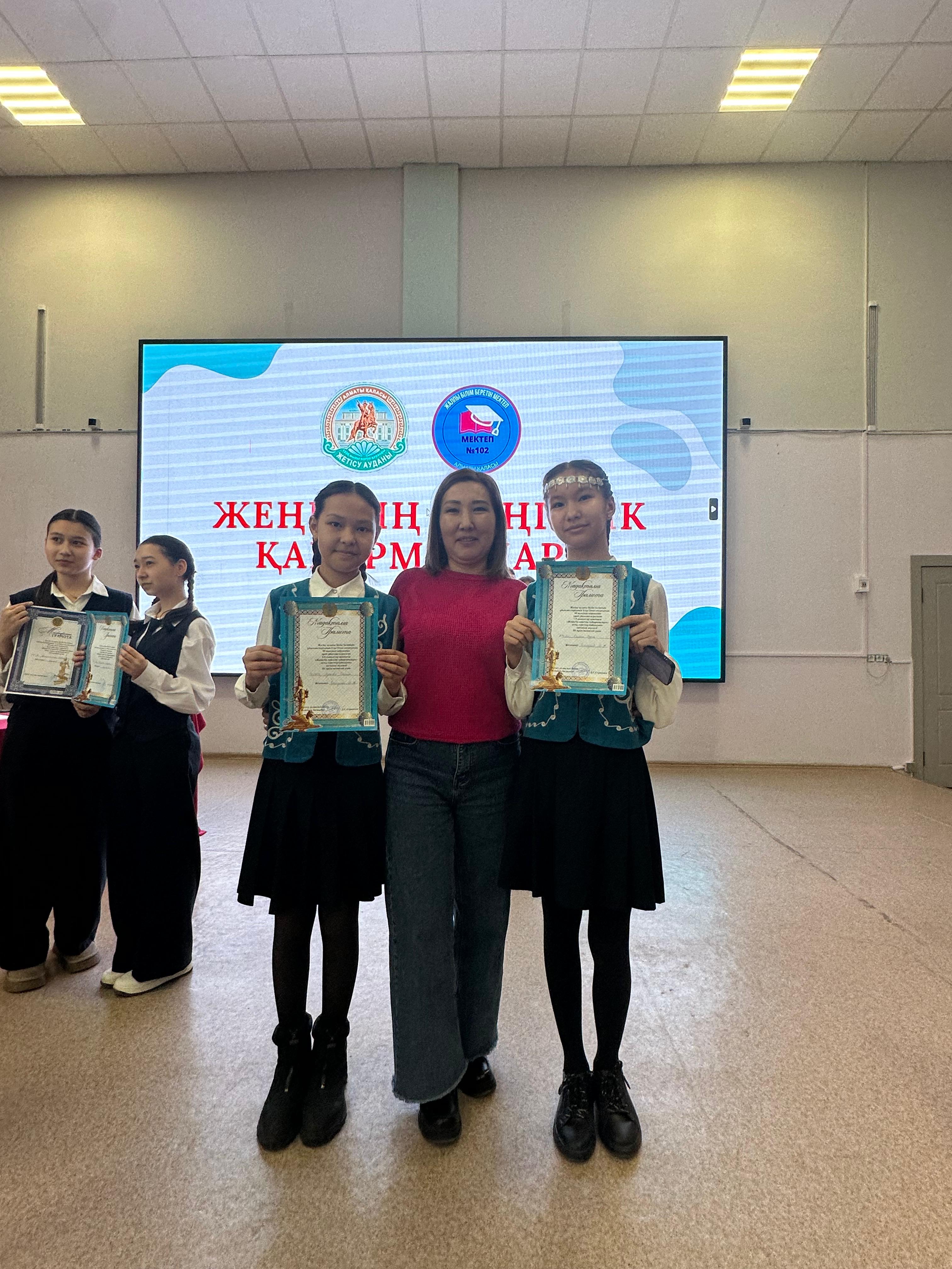 Жетісу ауданы Білім бөлімінің ұйымдастыруымен Ұлы Отан соғысының 80жылдық мерекесіне орай ұйымдастырылған 5-9сыныптар арасында “Жеңістің мәңгілік қаhармандары”атты суреттер байқауына қатысып жүлделі |||орын иеленген Бекжан Нұрай және Аденова Дария марапатталады