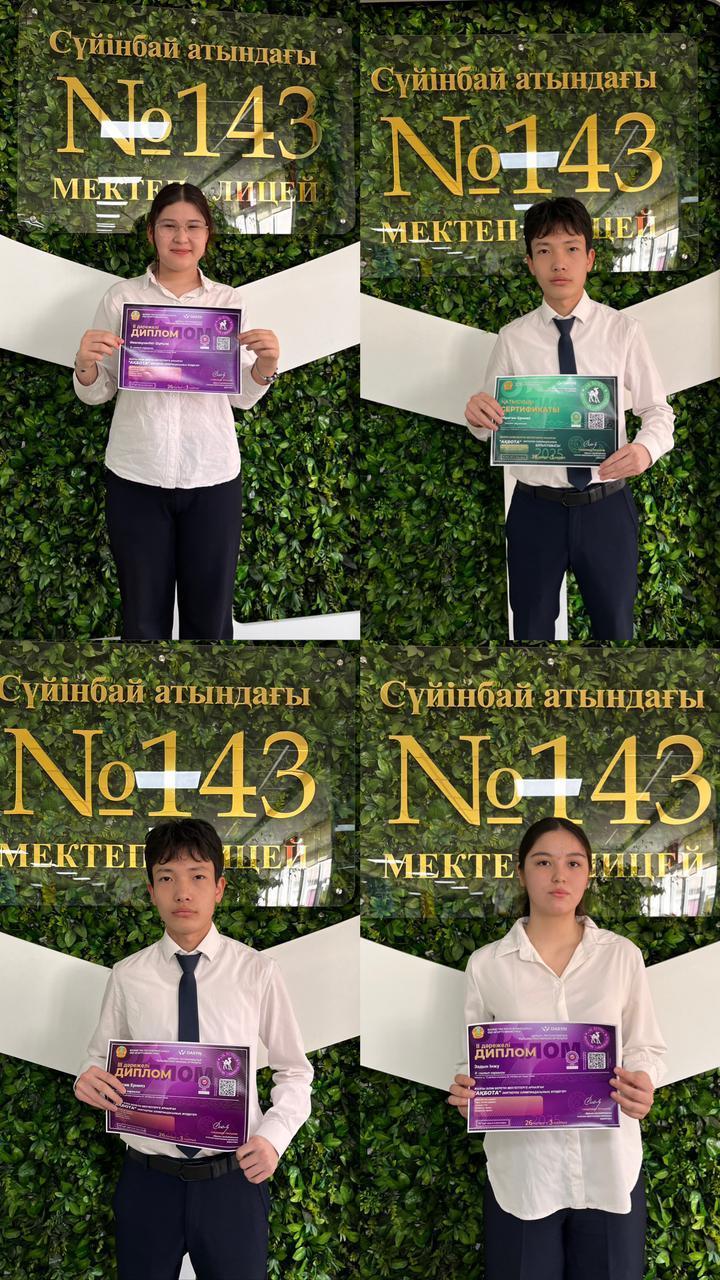 9”а” сынып оқушылары Задын Інжу 2-дәрежелі диплом, Ибрагим Ернияз 3-дәрежелі диплом және сертификатпен, Иманмұханбет Шұғыла 2-дәрежелі дипломмен марапатталды. Жетекшілері: