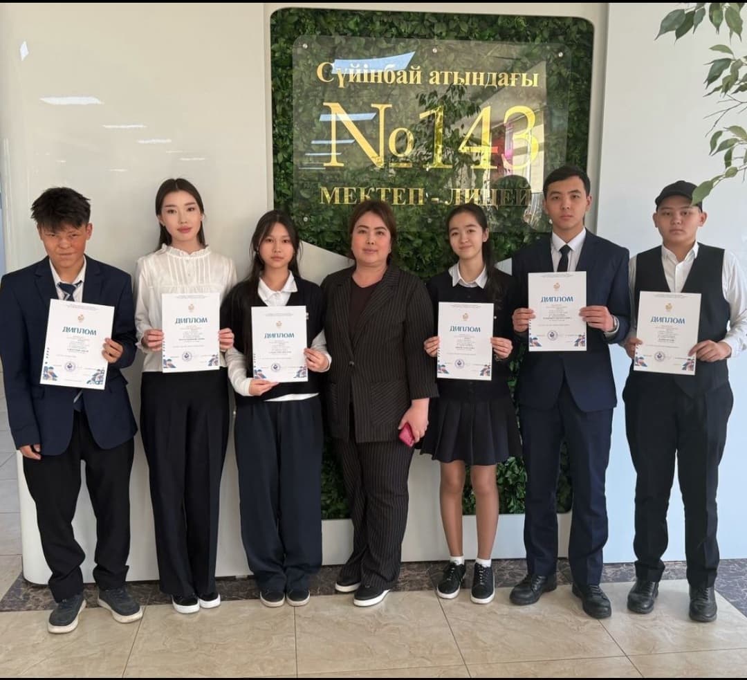 Алматы қаласы Білім басқармасы мен «Алматы дарыны» орталығының ұйымдастыруымен 10–16 қараша аралығында 5–11 сынып оқушыларына арналған «Полиглот» қалалық байқауында физика пәнінен Сүйінбай атындағы №143 мектеп-лицейдің 10А сынып оқушылары Байжан Әли, Рақымбек Дінмұхаммед, 10Б сынып оқушысы Тойғанбай Әлнұр, 10В сынып оқушылары Тоқтасын Амина, Сахабатова Ботагөз, 10Д сынып оқушысы Талғатова Мерей І орын дипломымен марапатталды. Жетекшісі Исаева Алия Зарлыкхановна.