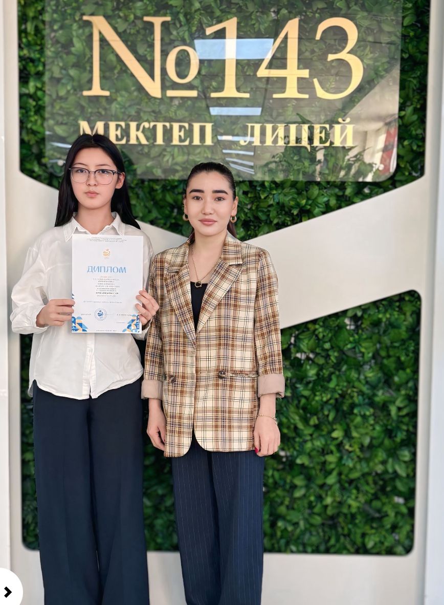 Алматы қаласы Білім басқармасы мен «Алматы дарыны» орталығының ұйымдастыруымен 10–16 қараша аралығында 5–11 сынып оқушыларына арналған «Полиглот» қалалық байқауында информатика пәнінен Сүйінбай атындағы №143 мектеп-лицейдің 8 сынып оқушысы Ержанқызы Сая ІІ орын дипломымен марапатталды. Жетекшісі Шеризат Айзада Жомартқызы