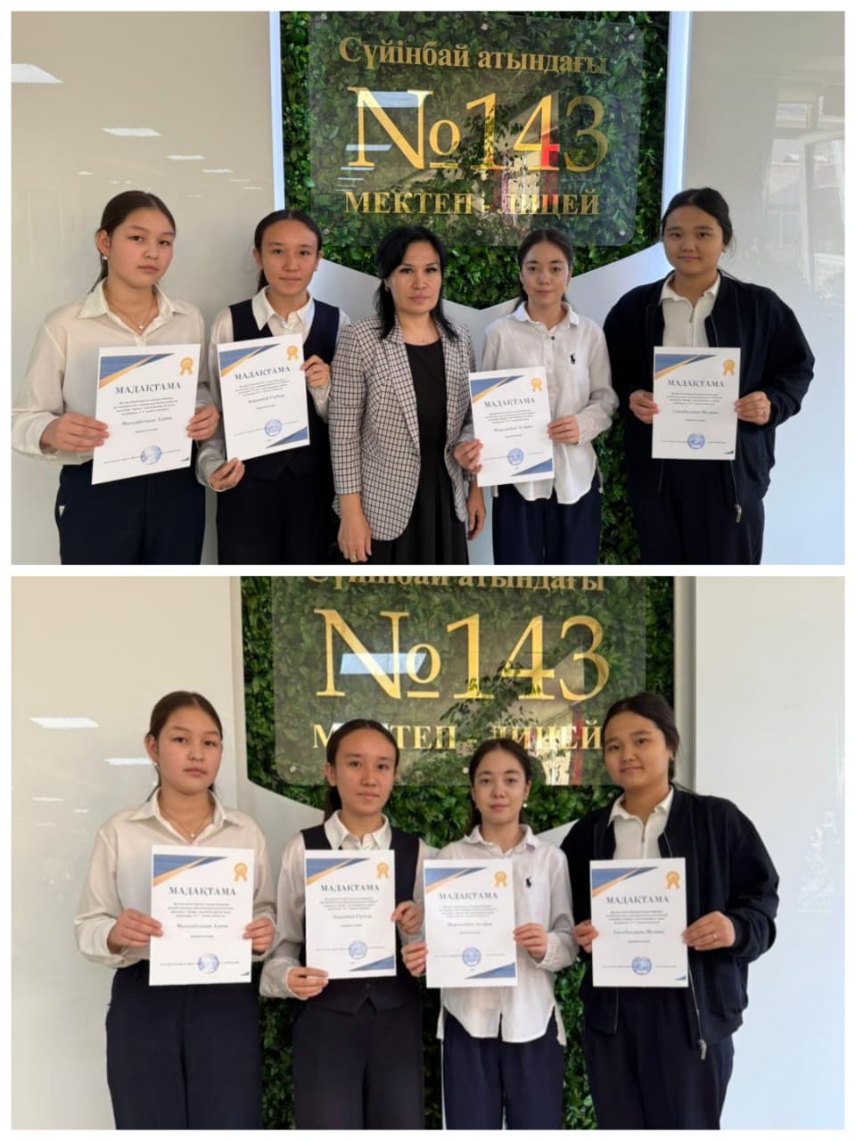 Сүйінбай атындағы №143 мектеп-лицейде химия-биология,география пәндерінен 7—8 сыныптардың мектепішілік олимпиада жеңімпаздары марапатталды! 🏅