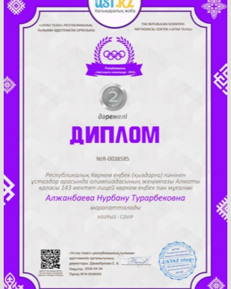 Сүйінбай атындағы №143 мектеп-лицейдің ұстаздары елімізде төтенше жағдай жарияланғанына байланысты қашықтан білім беруде. Сонымен қатар ұстаздар арасында қашықтан өткен олимпиадаларға қатысып, жүлделі орындарды иеленуде. Атап айтар болсақ Тузилова Нүргүл апай, Алжанбаева Нұрбану апай. Құттықтаймыз! 💐