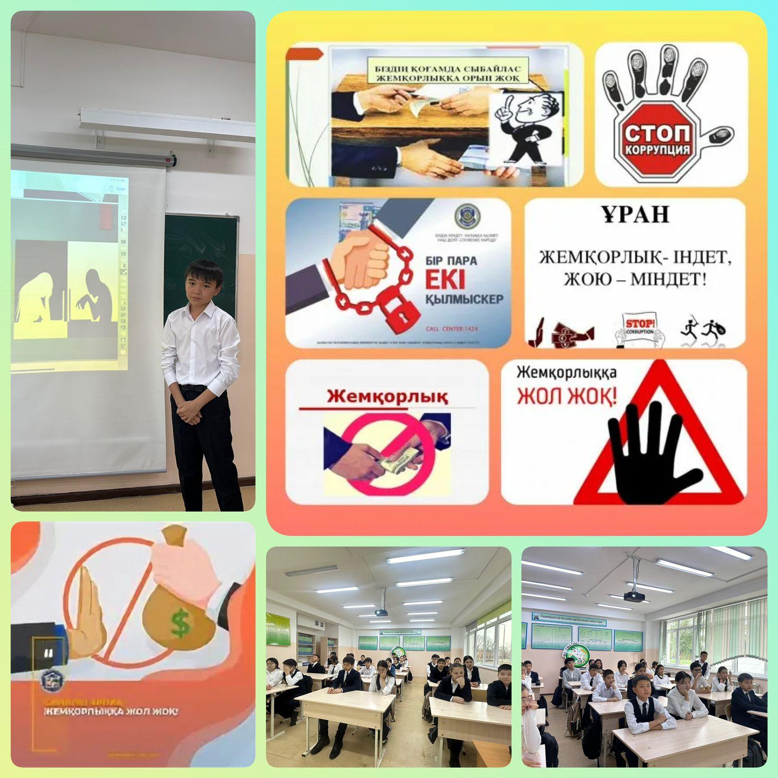 «Жемқорлыққа жол жоқ!» тақырыбында сынып сағаты болып өтті.