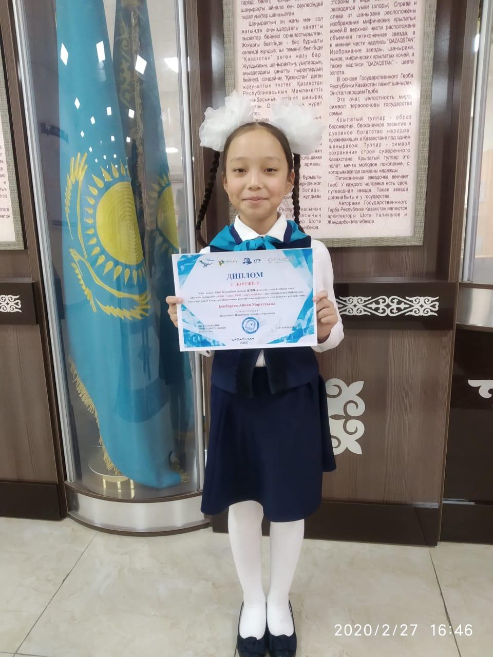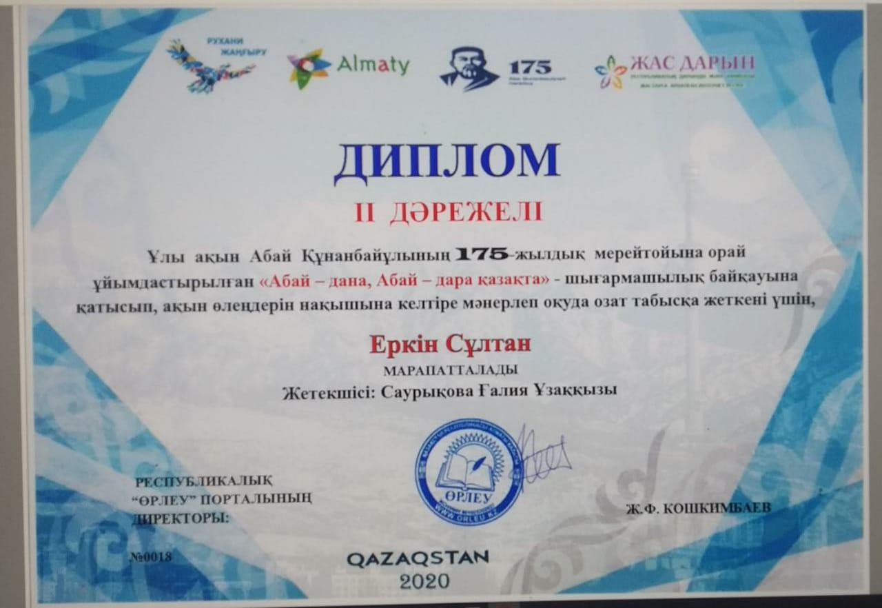 "Абай-дана, Абай дара қазақта" шығармашылық байқауына қатысып, І, ІІ дәрежелі дипломдармен марапатталды.