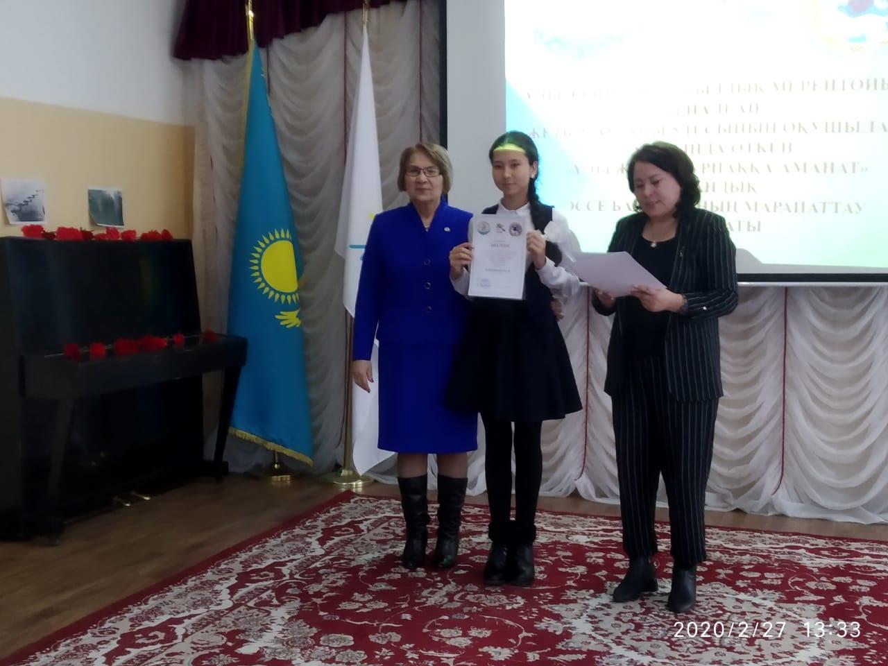Жетісу ауданы, №102 ЖББ мектепте Ұлы жеңістің 75жылдық мерейтойына арналған,"Ұлы жеңіс-ұрпаққа аманат"