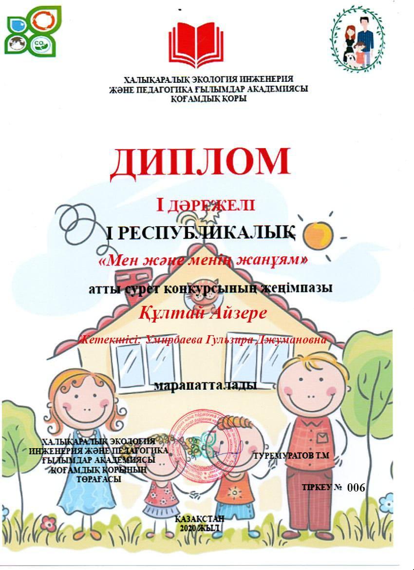 Сүйінбай атындағы №143мектеп-лицейдің мектепалды даярлық тобының кішкентай бүлдіршіндері Халықаралық экология инженерия және педагогика ғылымдар академиясы ұйымдастырған "Мен және менің жанұям" Республикалық сурет байқауына қатысып, жүлделі орындарға ие болды. Құттықтаймыз! 💐
