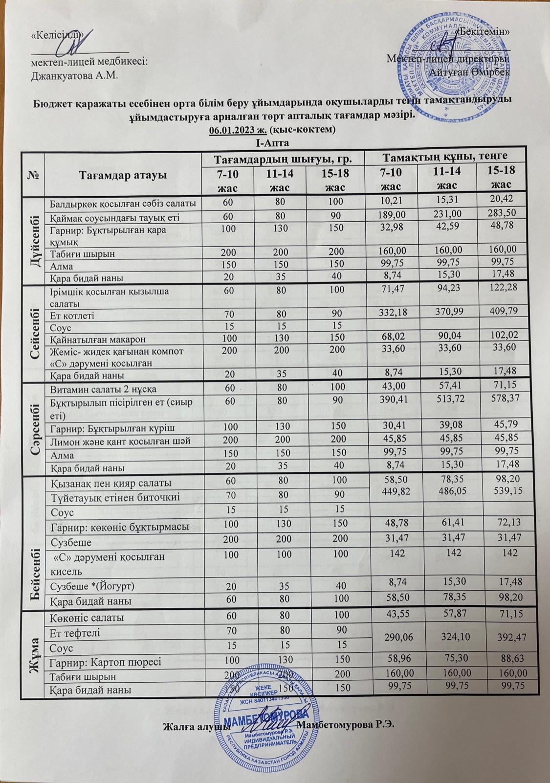 09 январь 2023 0 1 2 3 4 5 Бюджет қаржы есебінен тегін тамақтандыруды ұйымдастыруға арналған 4 апталық тағамдар мәзірі 1 апта 06.01.2022 Осы беттің QR-коды:QR-код этой страницы: