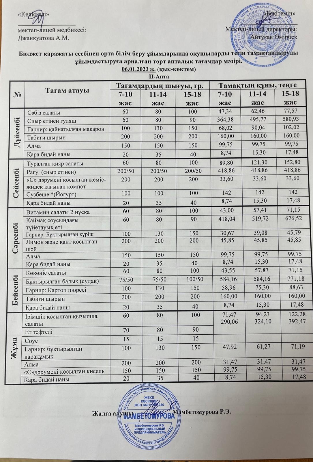 09 январь 2023 0 1 2 3 4 5 Бюджет қаржы есебінен тегін тамақтандыруды ұйымдастыруға арналған 4 апталық тағамдар мәзірі 2 апта 06.01.2022 Осы беттің QR-коды:QR-код этой страницы: