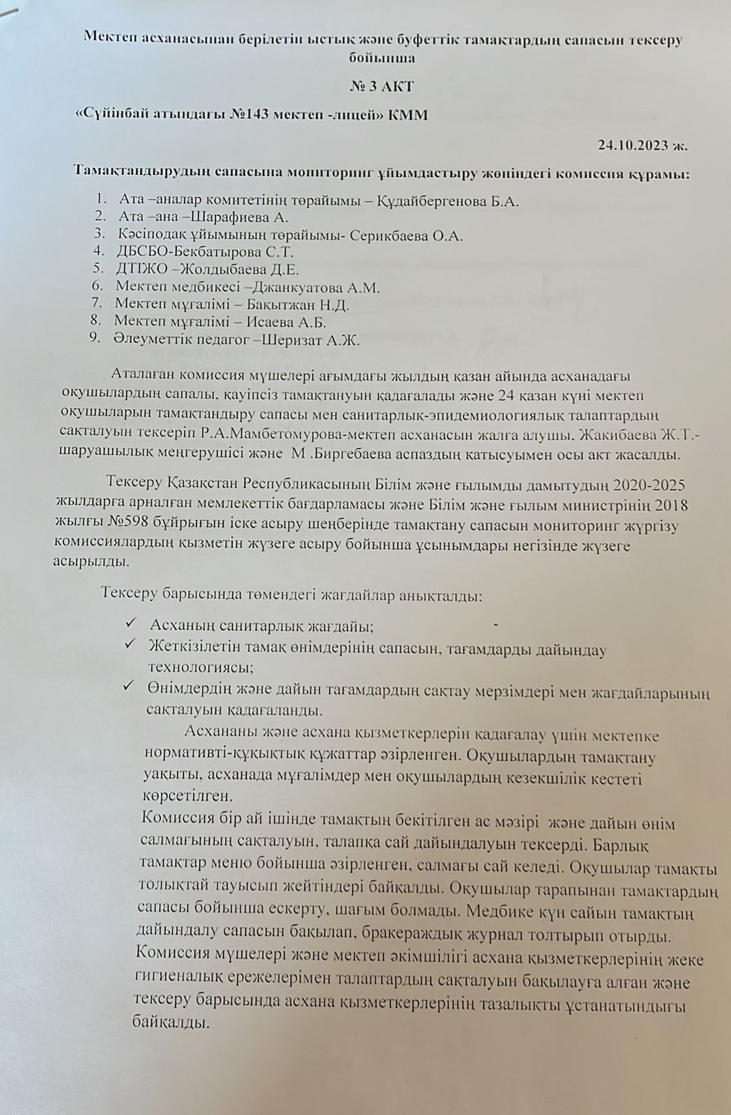 24 октябрь 2023 0 1 2 3 4 5 Тамақтандыру сапасына мониторинг жасау №3 акт-і ҚАЗАН АЙЫ Осы беттің QR-коды:QR-код этой страницы: